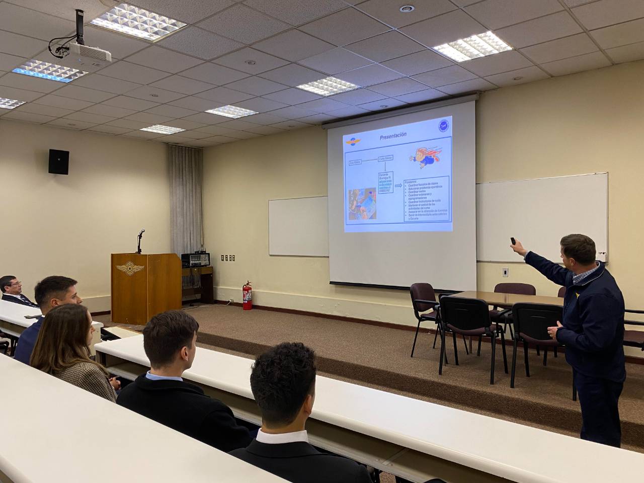 El director de la Escuela de Vuelo, instructor Francisco Neira Toledo, junto con el jefe de Operaciones, instructor Fernando Ilharreguy Niklitschek, ofrecieron una presentación en la que, además de darles la bienvenida, introdujeron a los alumnos en la estructura del Club Aéreo y su Escuela de Vuelo, explicando los pasos a seguir para adentrarse en el apasionante mundo de la aviación general deportiva.